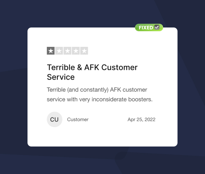 "Servizio clienti terribile (e costantemente) AFK con potenziatori molto poco considerati." - https://www.trustpilot.com/reviews/6266ac697b2618e9fea56948